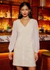 Get ready for all eye on you this party season! Dazzle in this all over sequinned tunic. The velvet contrasting tie in the back give this dress a cute feel. The sheer sleeves and shorter hemline make this piece perfect for dancing the night away,