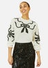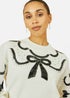 Get ready to celebrate the Christmas festivities in this seasons cutest trend - Bows! The relaxed fit knitted jumper is soft and cosy, and adorned with gorgeous bow sequinned along the neckline.