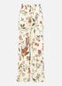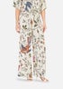 Yumi White Viscose Bird And Floral Print Wide Leg Trousers