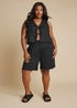 YOURS Curve Black Cropped Bow Tie Front Linen Waistcoat