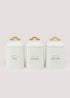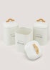 Store your tea, coffee and sugar in style with this set of 3 cream metal canisters. In a sleek and chic design that will sit proudly on your kitchen worktops, the set includes three tins, each finished with a handy engraved label and wooden handles. Part of the Cottage trend.