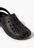 Slide into something stylish with these versatile clogs! Designed in a practical black shade for easy outfit matching this summer, they feature an easy slip-on style, cleated soles for extra grip and a ankle straps for an easy wear. Crafted with a super comfortable material, they're a must-have for your summer footwear collection.