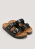Black Double Buckle Footbed Sandals