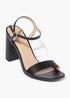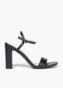 Learn moreEasy to dress up or down, these versatile black sandals will be the go-to star of your summer wardrobe. Featuring a simple front strap and slimline buckle fastening to the ankle, the open square toe style is finished with a block heel. Also available in camel. Heel Height: Approx 4 Inch.
