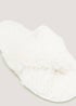 Cute, cosy and comfy in equal measure, these plush slippers will become your new go-to pair. Crafted from sumptuously soft and snug fluffy fabric, the cream slippers feature a cross-strap front and soft sole.