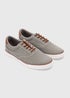 Learn moreStep into comfort and style with these shoes. Crafted with a premium canvas upper, these shoes offer a luxurious yet casual look perfect for every occasion. The rich grey tone is versatile, pairing effortlessly with any outfit while the brown laces and trim add a touch of elegance. The white, durable rubber sole provides excellent traction and support for all-day wear. Whether you're heading to the office or exploring the city, these canvas pump shoes are your go-to choice for style and comfort.