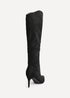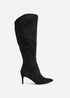 Make a statement with our Ambition elegant high leg boots, crafted from high-quality faux suede for a smooth, refined finish. Featuring an asymmetric top line - cut higher at the front for a sleek, knee-high silhouette and lower at the back for ease of movement. Set on a slim 7cm stiletto heel for a flattering lift. Finished with a soft faux fur lining, cushioned inner sock, and a full inside zip for easy wear, they blend bold fashion with all-day comfort. Perfect for elevating all looks with effortless style. Boot height: 40cm.