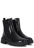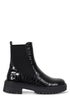 Elegant faux croc patent leather with a chunky sole and silver stud trim, these elasticated Chelsea boots can be easily pulled on — no zip needed. Delightful for the eye with a shaft height of 16 cm and a heel height of 4 cm.