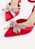 Linzi Angela Red Satin Diamante Bow Detail Court Heel