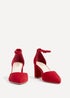 Our Linzi wide fit range is designed to let you show off your style in supreme comfort. Experience a blissful blend of elegance and comfort with our soft faux suede classic court heels, featuring an ankle strap and a 7cm block heel..