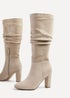Linzi Aura Beige Faux Suede Ruched Knee High Heeled Boot