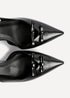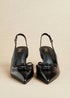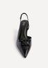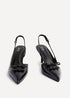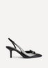 Step into sophistication with our Aysha court heels. Featuring a pointed toe and double bow detailing. Set on a slender stiletto heel for timeless elegance. The adjustable slingback strap and cushioned insole ensure a perfect balance of style and comfort. Heel Height: 7cm.