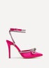 Learn moreSatin Classic Court Heel Style Embellished Double Bow Front Detail Embellished Wrap-Around Ankle Strap Pointed Closed Toe Heel Height 10cm / 3.93 inches.
