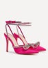 Satin Classic Court Heel Style Embellished Double Bow Front Detail Embellished Wrap-Around Ankle Strap Pointed Closed Toe Heel Height 10cm / 3.93 inches.