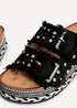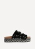 Linzi Bahama Black Diamante Studded Double Buckle Flatform Slider Sandal