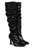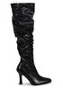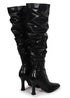 Linzi Berry Black Faux Leather Long Ruched Heel Boot