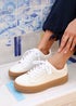 Walk in luxury with our Blanca flatform trainers. Made from premium faux leather, these trainers feature an elevated 4.5cm platform design with laces for a secure fit and a cushioned insole for maximum comfort..