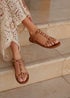 Linzi Bliss Tan Faux Leather T-Bar Footbed Sandal