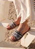 Our Carel flat sandals blend effortless elegance with everyday comfort. Designed with an intricately embellished woven front strap, they add a stylish touch to any look. The moulded footbed provides ultimate support, making them perfect for all-day wear.