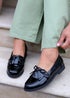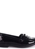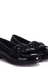 Faux Patent Leather Classic Loafer Design Bow and Fringe Detail.
