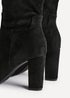 • Linzi Claim Black Faux Suede Knee High Block Heeled Boot