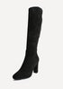 Linzi Claim Black Faux Suede Knee High Block Heeled Boot