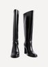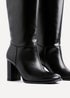 Linzi Cole Black Faux Leather Pull-On High Leg Block Heeled Boots