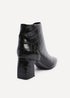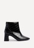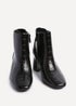 Linzi Cove Black Faux Croc Patent Leather Soft Square Toe Block Heel Ankle Boot