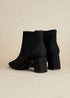 Linzi Cove Black Faux Suede Soft Square Toe Block Heel Ankle Boot