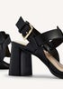 Linzi Cristina Black Faux Leather Block Heeled Sandal