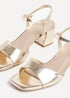 Linzi Darlene Gold Faux Leather Low Block Heeled Sandals