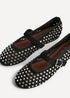 Linzi Delicate Black Suede Diamante Embellished Ballet Pumps