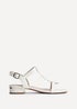 Linzi Deluxe Wide Fit White Faux Leather T Bar Looped Low Heeled Sandal