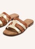 Linzi Eloise Gold Tan Faux Leather Interlock Flat Sandals