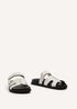 Learn moreElevate your summer style with these faux leather slip-on sandals featuring a linked front strap and single velcro fastening. Experience superior comfort with the molded footbed that supports your every step. Don't miss out on this must-have sandal for your next vacation getaway..