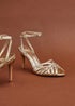 Step out in sophisticated style with our Eros heels. Designed with a flattering peep toe and a chic, cage like silhouette. These statement heels are finished with a cushioned insole for added comfort. Sat on a 8.5cm stiletto heel.