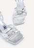 Linzi Eva Silver Faux Leather Diamante Embellished Heels