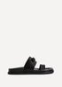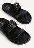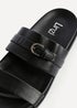 Linzi Ezra Black Faux Leather Flat Slider Sandals
