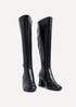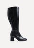 Linzi Fable Wide Fit Black Faux Leather Knee High Block Heeled Boot