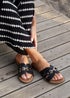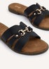 Linzi Florie Black Faux Leather Gold Bar Detail Slider Sandal