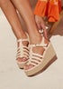 Linzi Gemini Cream Faux Leather Gladiator Wedges