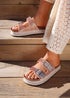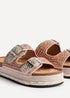 Linzi Glitzy Pink Diamante Double Buckle Flatform Slider Sandal