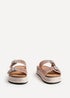 Learn moreIndulge in luxury this summer with our Glitzy flatform sandal. Adorned with dazzling diamantes, this sandal features dual buckle straps and a 4cm elevated platform wrapped in textured material. Its moulded footbed ensures all-day comfort, making it the ideal addition to your summer wardrobe.