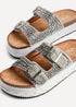 Linzi Glitzy Silver Diamante Double Buckle Flatform Slider Sandal