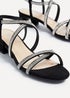 Linzi Glow Black Faux Suede Crossover Diamante Straps Low Block Heeled Sandal