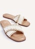 Linzi Honey White & Gold Woven Crossover Flat Slider Sandals