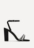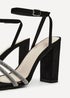 Learn moreSoft Faux Leather Block Heeled Sandal Double Diamante Front Strap Wrap Around Ankle Strap Heel Height 9.5cm.