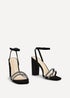 Linzi Imera Black Faux Suede Double Diamante Strap Block Heeled Sandal