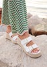 Linzi Impact White Faux Leather Double Buckle Espadrille Wedge Mule