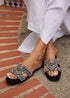 Linzi Indira Black Suede Aztec Design Embellished Slider Sandal